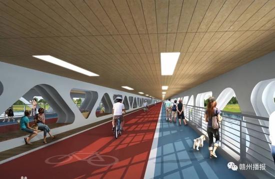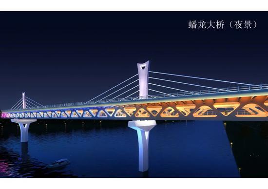 蟠龙大桥是赣州首座双层景观大桥,采用行人和机动车分离的双层交通布置,汽车走上层、行人和非机动车走下层。