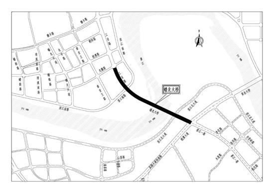 赣州市蟠龙大桥位于赣州经开区与蓉江新区之间,横跨章江,北接工业路,南接蓉江一路,全长约1760米,总投资约6.9亿元,预计2022年12月底建成通车。